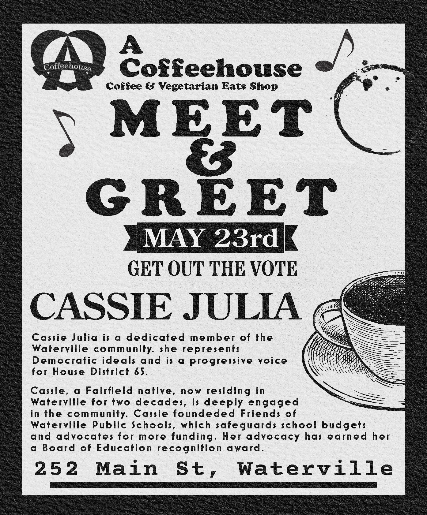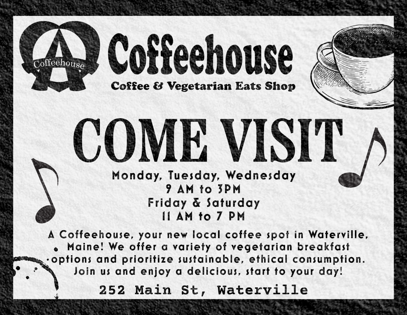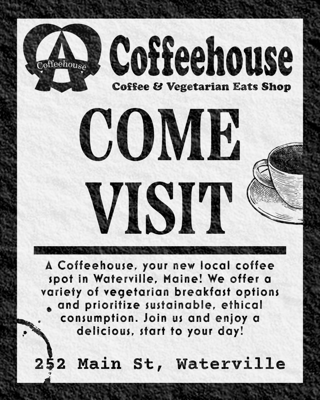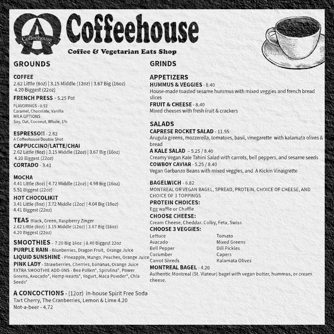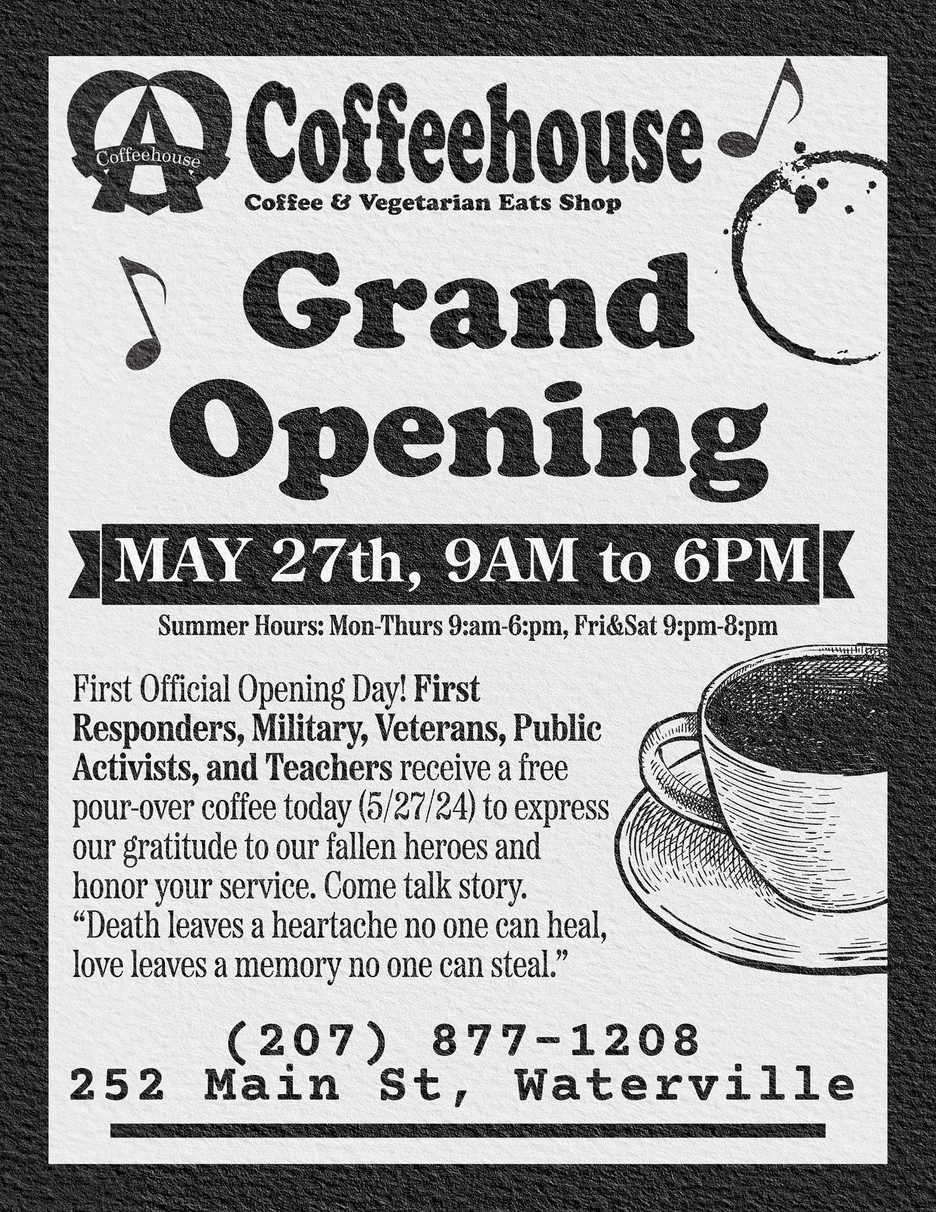 Created promotional materials for A Coffeehouse events using Adobe Express. Designed on-brand layouts for print and digital use to support marketing efforts, promotions, and in-store communication.